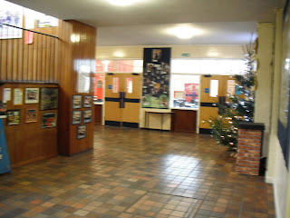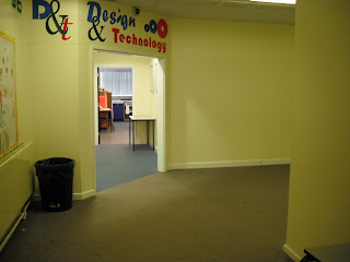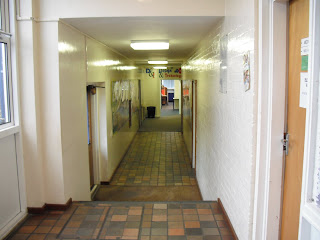 The D&T area in the hallway where the teachers would have met to discuss suspicions of the then unknown killer, prior to their removal from the final script.